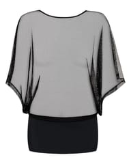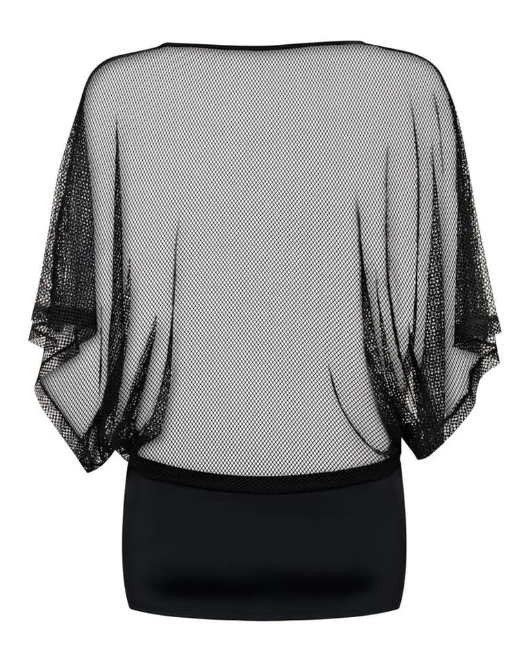 Frivolous, sexy mini-dress! - top and mini-skirt in one - mesh top with loose wide sleeves - bottom made of pleasant and flexible fabric - rear same as front - sexy thong included - fabric pleasant to the body (90% polyamide, 10% elastane)