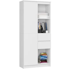 Are you looking for a stylish yet functional storage space? A white office bookcase will perfectly fulfill this task. It is made of solid 16 mm laminated board, which is resistant to abrasion. Thanks to its universal appearance, the furniture will perfectly fit into any interior. It will work in an elegant office, a minimalist living room and even a children's room. The bookcase has been equipped with six capacious shelves that will accommodate all papers and documents. Open spaces are a great place to place souvenirs and trinkets. Metal roller guides with extension lock ensure trouble-free operation of drawers. The 80cm office bookcase has a timeless white color that gives lightness to any interior. It also fits well with other models in this series, from which you can create a unique and unique set. The furniture has a height of 180 cm, thanks to which it will easily fit even in low apartments. The remaining dimensions are 80 cm long and 35 cm deep.