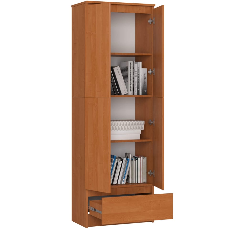 OFFICE BOOKCASE CABINET R 60 cm CLP in alder color is a multifunctional piece of furniture used to store office supplies of various sizes thanks to the function of flexible space management between shelves. The bookcase can be used both in office and residential rooms - if, for example, we work remotely and we need to have access to office supplies at hand. The rack is made of laminated board with a thickness of 16 millimeters, supplemented on the edges with abrasion-resistant ABS veneer. The rack has dimensions: 60 cm (width), 180 cm (height), 35 cm (depth). It consists of: