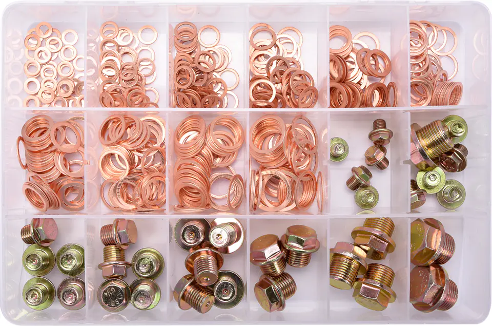 - SET OF 534 PIECES OF COPPER PADS AND OIL DRAIN PLUGS.
