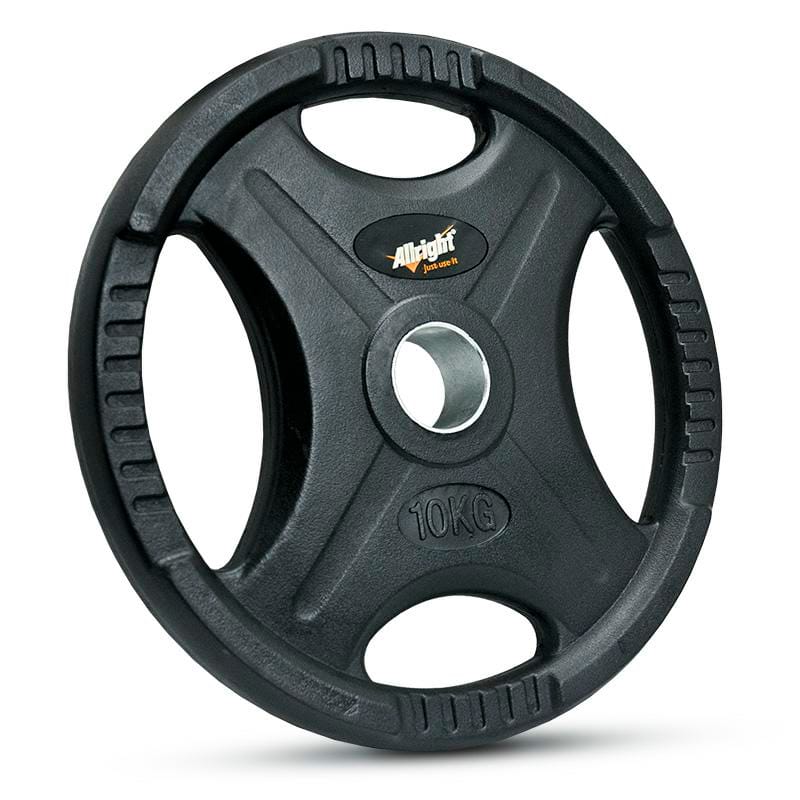 Obciążenie olimpijskie Allright Krążek żeliwny powleczony warstwą gumy w kolorze czarnym. Średnica otworu w standardzie olimpijskim (50mm). Obciążenie olimpijskie Allright idealnie sprawdza się w domowej oraz profesjonalnej siłowni. Duże, wygodne i ergonomiczne chwyty w obciążeniu zapewniają bezpieczeństwo i wygodę podczas przenoszenia oraz zakładania na gryf/urządzenie do ćwiczeń. Wysokiej jakości odlew żeliwny powleczony jest grubą warstwą trwałej gumy, która gwarantuje komfort użytkowania, zabezpiecza sprzęt i podłogę przed uszkodzeniem.