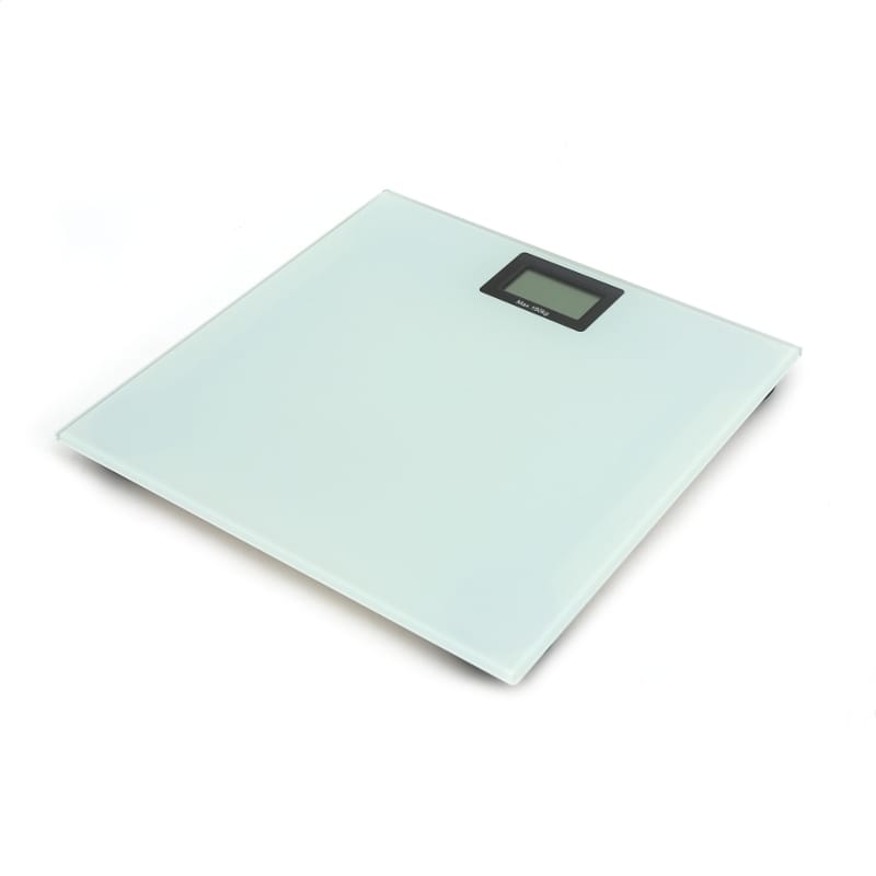 BATHROOM SCALE • Max capacity: 180kg • Dimensions: 28x26cm • Graduation: 100g(0.2lb) • 51x25mm LCD digits • 6 mm tempered glass • Equipped with high strain gauge sensors • 1 x CR2032 battery (included) • Auto power on • Automatic zero and switch off • Low battery and overload indication
