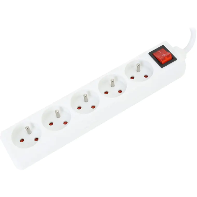 Power supply extension cord with 5 sockets- Switch- Electrical loads up to 16A / 3500W- Grounding in each case- Children protection shutters built-in- High quality flame-retardant plastic case- Basic surge protection for connected devices. Built-in varistor protects all connected electrical devices from voltage spikes up to 90 J