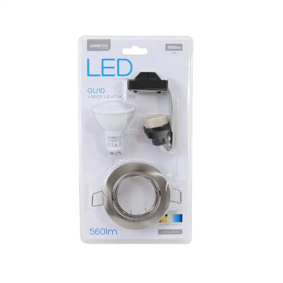 OMEGA SPOTLIGHT HOLDER ROUND NICKEL WITH LED GU10 7W 2800K