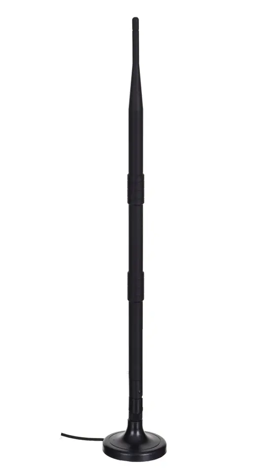 360° omni-directional stick antenna 9~12dBi 2.4GHz, screwed directly into wireless cards (RP-SMA connector on the cable) or directly into Access Points (RP-SMA connector of the antenna). The antenna can be used in active devices (Access Point, PCI or USB wireless card) as well as in laptops equipped with cards with RP-SMA connector. It allows 300-400% greater range/signal strength compared to a standard 2-3 dBi series-mounted antenna.