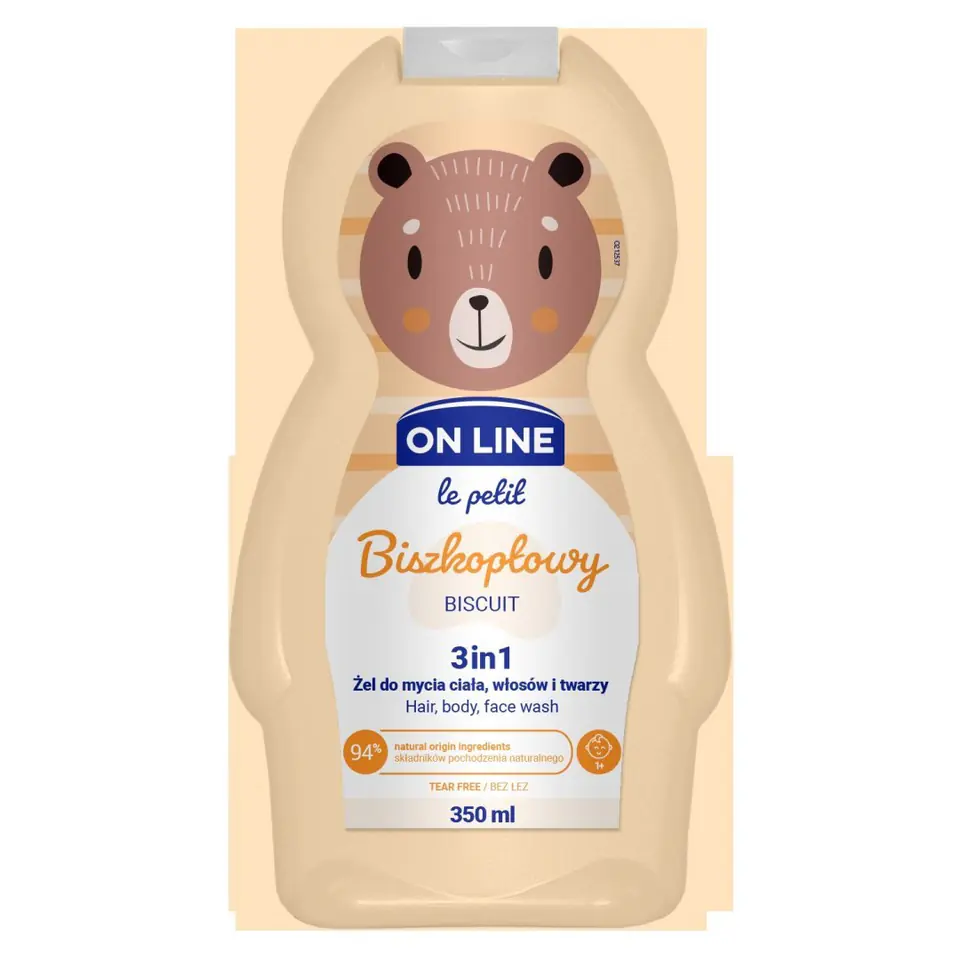 Moisturizing gel 3in1 with the smell of vanilla sponge cake. It washes while caring for the baby's body, hair and face. It does not pinch the eyes, facilitates combing the hair after bathing and reduces their electrification. The dermatologically tested product contains 94% ingredients of natural origin. It has a neutral pH. Can be used above 1 year of age. Suitable for sensitive skin. To use and precautions: Apply to moistened skin and hair.