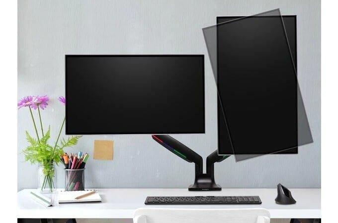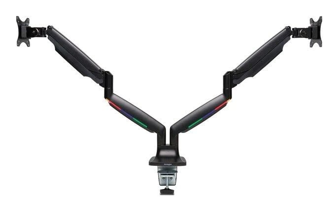The Kensington SmartFit Dual Monitor Arm with one-touch height adjustment is stable in any position and supports 13-34 diagonal flat or curved monitors weighing up to 19.8 lbs (9 kg).