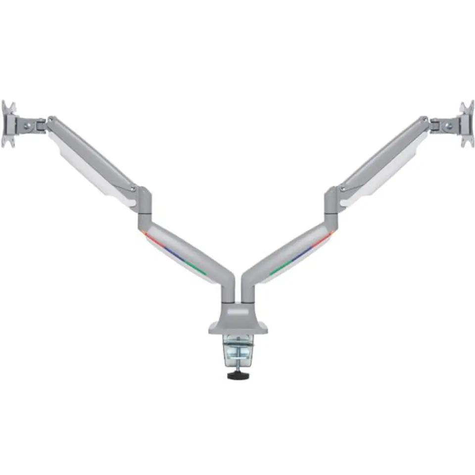 - One-touch adjustable arms with built-in gas spring simplifies height adjustment (6.7-19.9 or 170mm-505mm), provides 180° swivel and monitor rotation, +/- 90° tilt adjustment, and allows monitors to smoothly move up, down, forward and back for full motion articulation