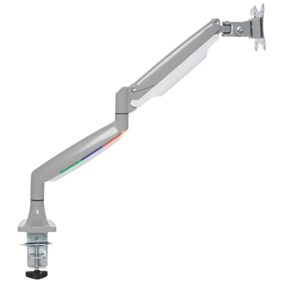 - One-touch adjustable arm with built-in gas spring simplifies height adjustment (170-505mm), provides 180° swivel and monitor rotation, +/- 90° tilt adjustment, and allows monitor to smoothly move up, down, forward and back for full motion articulation