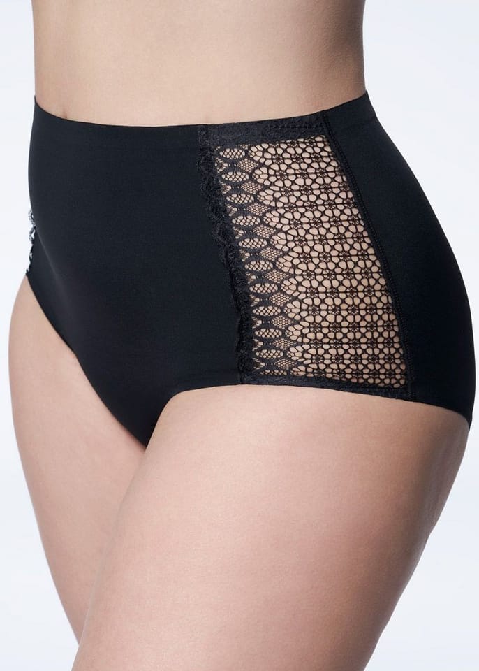 Comfortable, elastic briefs made in Invisible Line technology, which tries to "hide" underwear under clothes. With a higher state, ending closer to the navel. Available in several colors. On the sides - lace inserts. fabric content: 89% polyamide, 10% elastane, 1% cotton.
