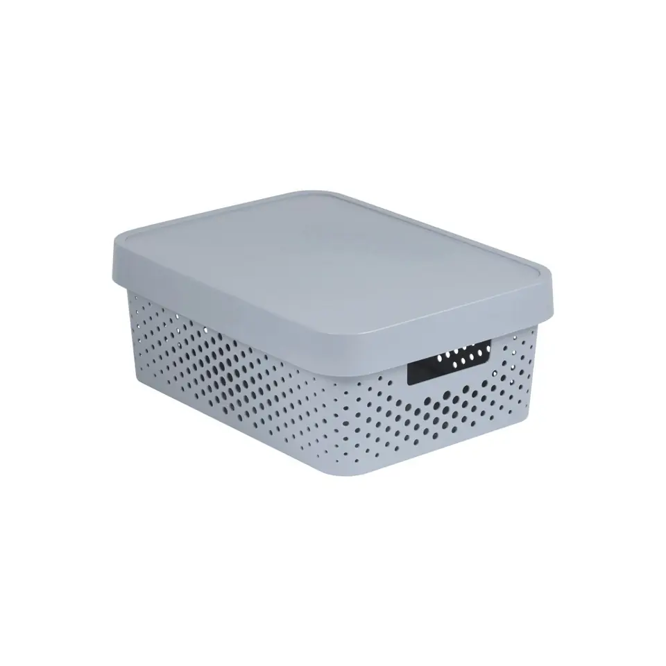 Holes in the walls of the box with a capacity of 11 l ensure great air circulation inside it, and convenient handles allow you to efficiently move the small things accumulated in the container. A lid with a flat surface allows you to place several containers on top of each other, thanks to which we will save a lot of space in the cabinet.