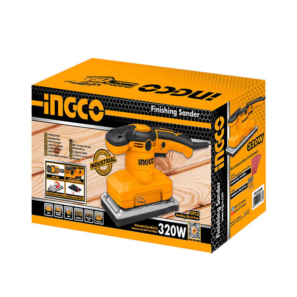 Orbital sander INGCO FS3208, 320W + set of 5 sandpapers