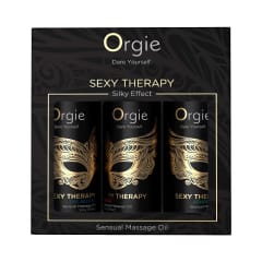 Mini Size Collection The Orgie Company has created a mini collection of its sensual Sexy Therapy massage oils. This wonderful collection is so much more than sample products, perfect for those who want to have a little bit of all the Sexy Therapy oils and take them with them everywhere! And for those looking for a nice little gift, the search is over.About the product:Hybrid body oil on a mineral oil base enriched with sweet almond and grape seed oil. Stimulating fragrance. The result of Sexy Therapy is moisturised, smooth and silky skin.Functions:Ideal for long-lasting foreplay massages. Smoothing, moisturising and silky skin effect.Fragrance:Secret - Floral Fruit Blend | Head notes: vanilla and jasmineAmor - Floral Fruit Blend | Head notes: pineapple and freesiaAphrodisiac - Oriental-Floral | Head notes: vanilla and cedarwoodHow to use:Apply a generous amount to the intended area. Use your hands or your own body for a massage.Contents01 The Secret, 01 Amor, 01 Aphrodisiac, individual pack in a coloured box