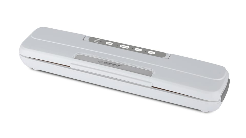 Discover a new dimension of food storage with the ESPERANZA OSSENWORST vacuum sealer. Thanks to advanced technology and a maximum vacuum level of 65 kPa, your products will stay fresh up to five times longer. An efficient suction pump and an intuitive control panel ensure quick and trouble-free protection of food, adapted to their type. Thanks to special operating modes (Dry / Delicate / Moist), the sealer allows not only longer storage, but also to preserve the full flavor and nutritional value of the products. Voltage: 220 - 240 V Maximum power: 110 W Maximum vacuum degree: 65 Kpa Vacuum sealing time: 10 ÷ 17 seconds Single welding time: 6 ÷ 13 seconds Pump capacity: 3 l/min Noise 60 dB Detachable power cable for easy storage Heating Type: DC 12V Heating Strip Features: Vacuum sealing Stop Welding Food mode selection: Dry Delicate Wet Maximum welding width: 300 mm Overheating protection Accessories: 5 plastic bags 12 x 20 [cm] 5 pieces of bags 20 x 25 [cm] Knife for easy opening of bags Power cord length: 150 cm Product dimensions: 38 x 9 x 6 [cm] Net weight: 807 g