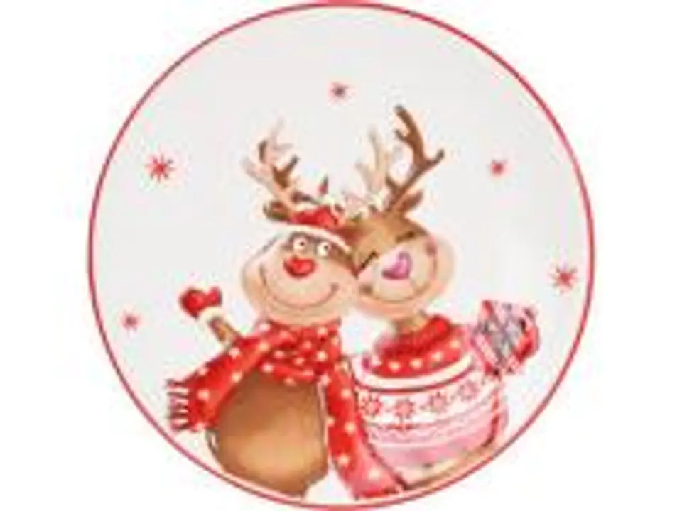 Ceramic oval plate 20 cm Reindeer Reindeer plate will perfectly fit into the festive décor of the house. Made of high quality ceramics. An elegant dish will be useful for serving Christmas meals. Special Features: Reindeer Ceramic Plate Plate made of dolomite Shape: round Diameter: 20 cm Pattern: Reindeer Usage: Food contact