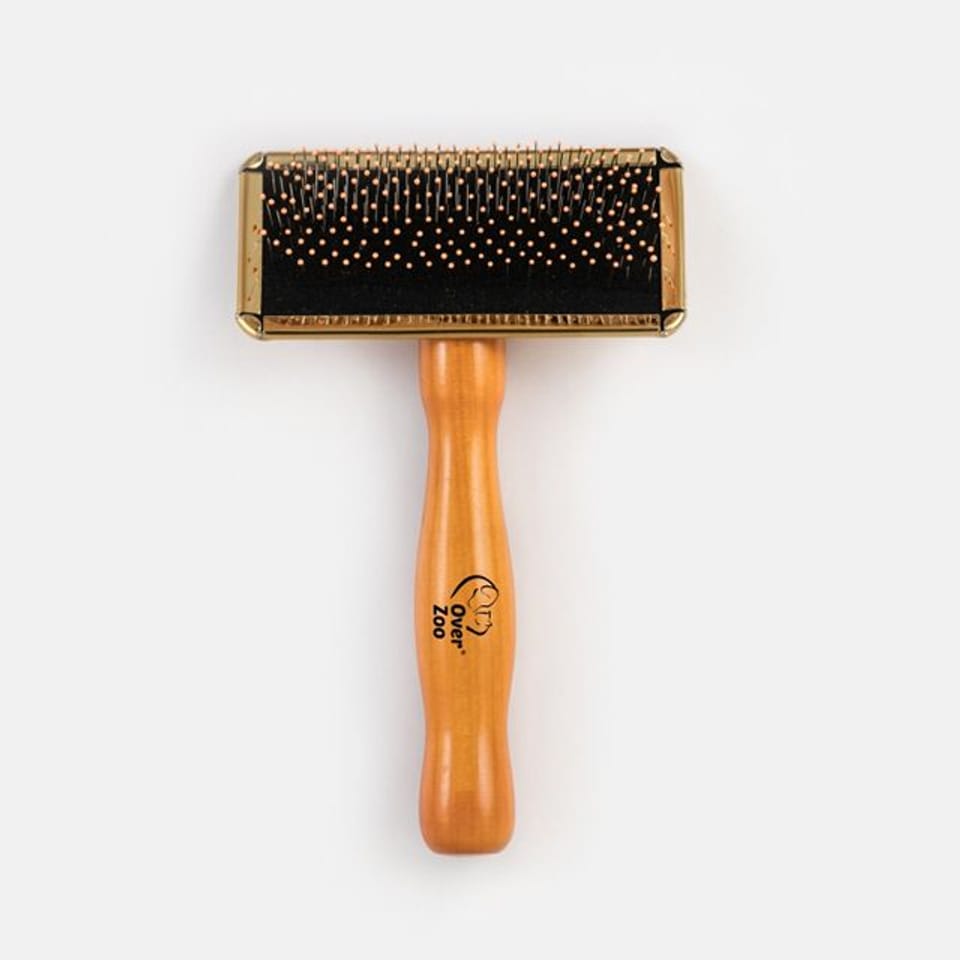 Thanks to steel, slightly bent needles, they are perfect for combing tangled hair, tangles and combing out dead undercoat. The rubber cushion cushions the pressure, so that the brushes better comb the hair and does not irritate the skin of the animal. Plastic balls on the ends of the needles additionally protect against skin irritation. Ergonomic wooden handle for easy combing.