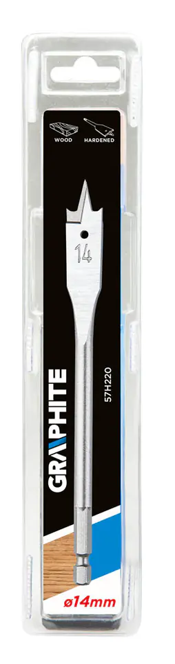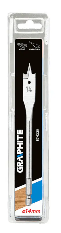 GraphITE wood vane drill (ref. no. 57H220) with a diameter of 14.0 mm thanks to a special blade profile allows you to double the drilling speed and avoid the effect of tearing out the material. The hexagonal "Quick Change" type chuck allows you to use the drill in the magnetic holders of cordless screwdrivers.
