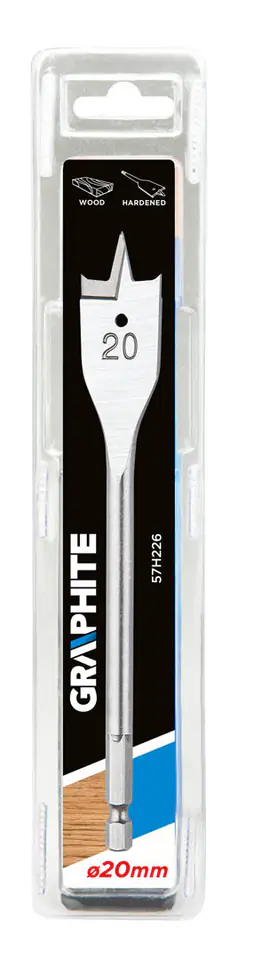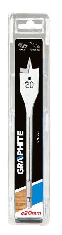 The GRAPHITE wood vane drill (ref. no. 57H226) with a diameter of 20.0 mm thanks to a special blade profile allows you to double the drilling speed and avoid the effect of tearing out the material. The hexagonal "Quick Change" type chuck allows you to use the drill in the magnetic holders of cordless screwdrivers.