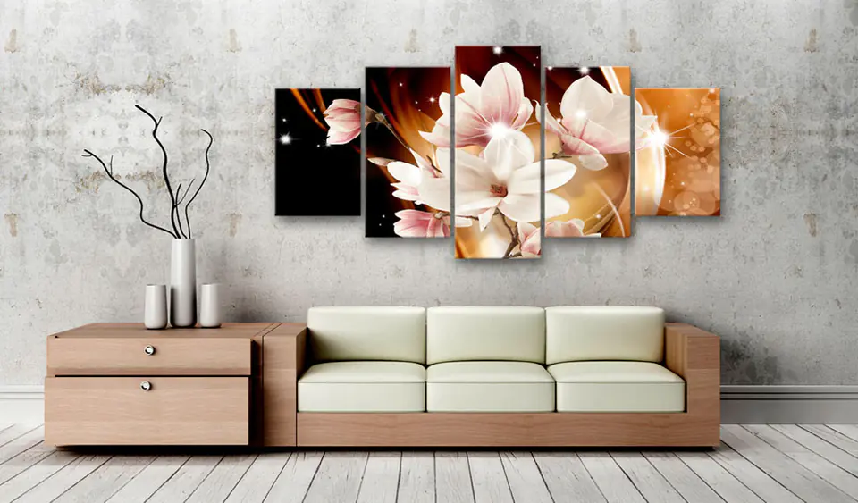 Image "Painting - Illumination (Magnolia)" is printed on a special non-woven canvas perfectly reproducing colors. The canvas is stretched on a light but stable frame made of environmentally friendly materials. High-end decoration is provided by high-quality printing, thanks to which colors are expressive and details are perfectly reproduced, regardless of the image format.