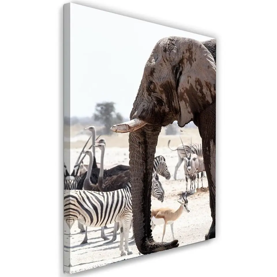 Painting on canvas, Animals in the savannah - elephant zebra ostrich antelope Size 60x90