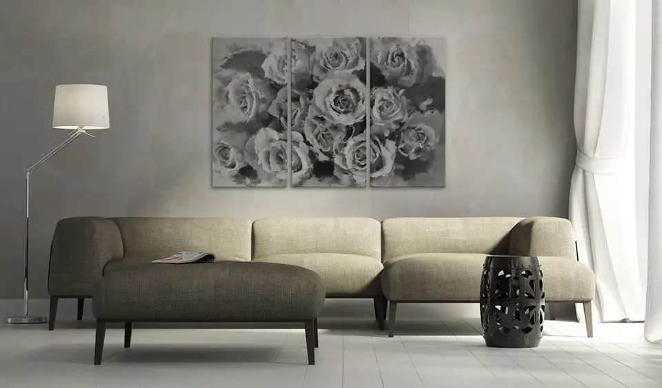 Image "Painting - Twelve Roses - Triptych" is printed on a special non-woven canvas perfectly reproducing colors. The canvas is stretched on a light but stable frame made of environmentally friendly materials. High-end decoration is provided by high-quality printing, thanks to which colors are expressive and details are perfectly reproduced, regardless of the image format.