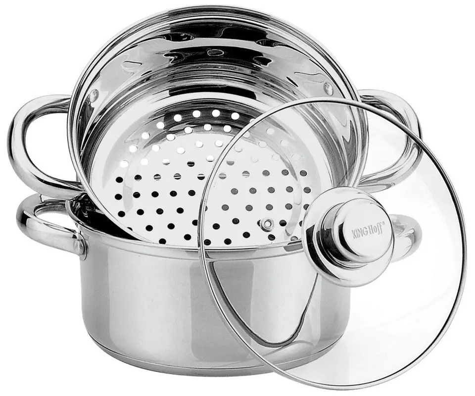 The set of steaming pots is made of high quality stainless steel. The steel used consists of the best quality alloy commonly used in world-class products, which guarantees its high corrosion resistance and very good strength. The material used allows you to quickly heat the dishes and keeps the heat for a longer time. The product is suitable for cooking on induction, gas, electric, ceramic and halogen cookers. It can be safely washed in dishwashers.