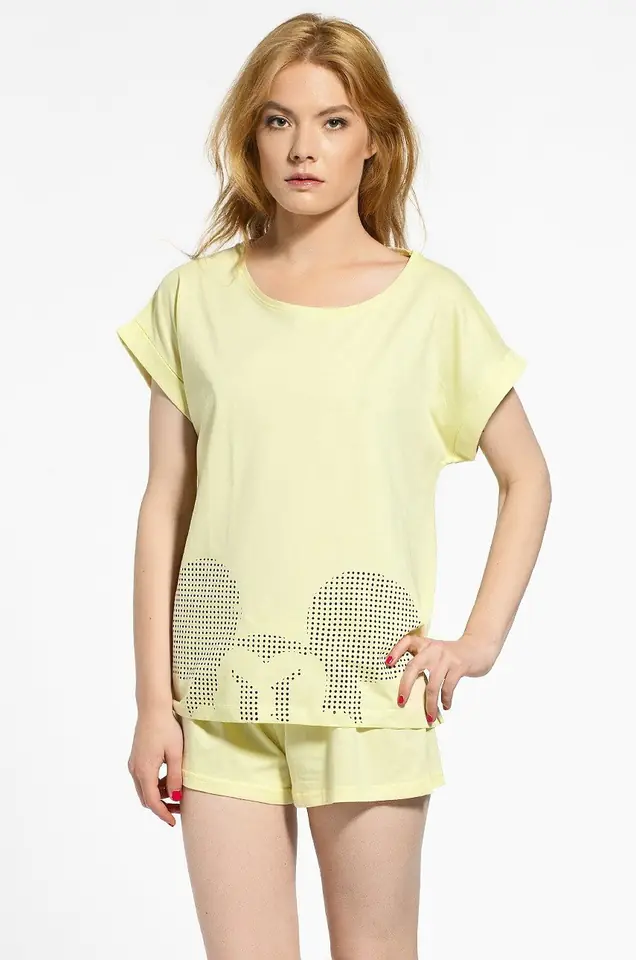 Komfortowa piżama damska, składająca się z koszulki z krótkim rękawem, oraz krótkich spodenek.