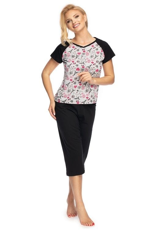 Two-piece, cotton pajamas in a charming style. Very pleasant to the touch, over seasonal, it will certainly emphasize your style. Blouse in the form of a t-shirt with smooth sleeves, cigarillo pants. Composition: 100% cotton.