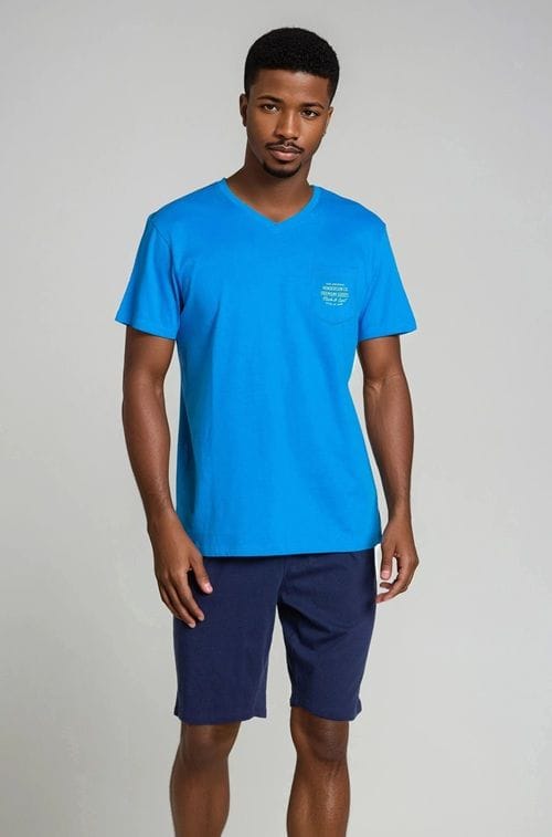 Szukasz wygody w połączeniu z designem? - Dodge to dwuczęściowa piżama męska z linii Premium, marki Henderson, która powinna wpaść Ci w oko. To klasyczny, sportowy styl uzupełniony o wysokiej jakości dodatki i wykończenia. Spodnie do kolan uzupełniono efektowną gumą w pasie, z nadrukowanym logo producenta, dzięki której zyskały nowoczesnej, intrygującej formy. T-shirt bardzo komfortowy, z kieszonką. Skład: 100% bawełna.