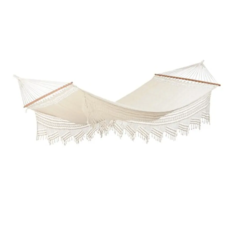 Palacio - hammock AMAZONAS Amazonas Hängematten GmbH is a German company producing original Brazilian hammocks, swings, carriers and stands since 1995. It has its own production facility in northeastern Brazil, which is a world-famous hammock production center. Characteristics Palacio is a hammock in which you will feel better than in the most comfortable bed, you will gently sway and spend time outdoors! To achieve this perfect effect - both visually and practically, we used beams made of durable Brazilian wood. The hammock has a huge size, it is very stable and comfortable. In its production we use a special jacquard method of weaving. The result is a unique hammock, extremely soft and super comfortable. The palacio is trimmed by hand with trimming called Veranda and its ends are crowned with a decorative weave "macrame". Each Rio hammock is an example of handcraftsmanship straight from Brazil. Palacio is packed in a beautiful bag made of the same material as the hammock. The hammock can be hung in three possible ways: - hammock for hanging on a tree (fastening on the Amazonas Smartrope line) - hammock for hanging against the wall (fastening on Easy+ hooks) - hammock for hanging on a rack Accessories for hanging a hammock (not included with a hammock). - Rope Amazonas Smartrope - Hook Amazonas Easy+ We recommend mounting PARADISO hammocks on Arcus, Troy, Sumo Grande. Technical parameters: * Seat area: about 240 x 160 cm * Total length: 360 cm * Product weight: about 5kg * Maximum load: about 200kg AZ-1062100