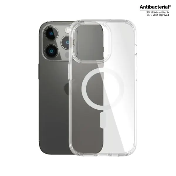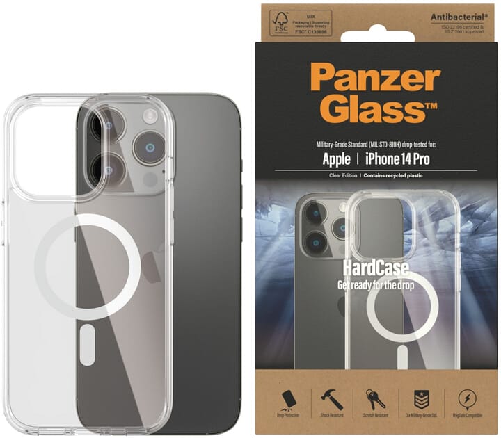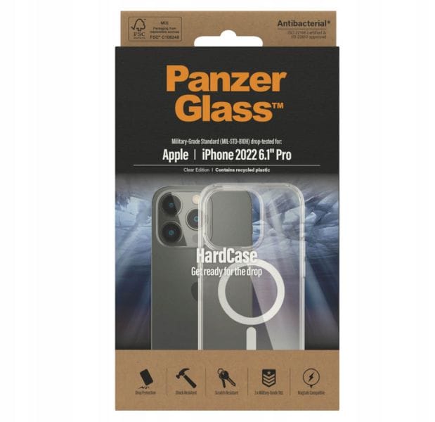 Protect your phone from heavy drops with PanzerGlass™ HardCase MagSafe Compatible. Just have them on your smartphone and you can feel safe. The case is fully compatible with MagSafe technology, allowing you to maintain the full functionality of your smartphone. HardCase is a combination of hard polyurethane with a flexible frame made of 100% recycled materials. This combination provides a high level of fall protection, and you don't lose sight of your smartphone's view of the transparent layer.