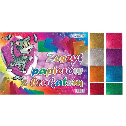 A notebook of papers with glitter. 8 colors, weight 150g. Size: 25 x 35cm