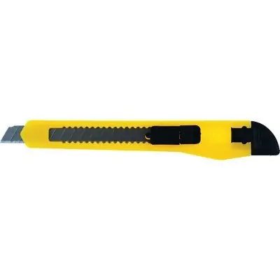 _ plastic case __ retractable, broken blade __ blade lock __ blade replacement by removing the black tip __ for delicate prac__ blade width: 9 mm__ Blade breaking: 12 pieces