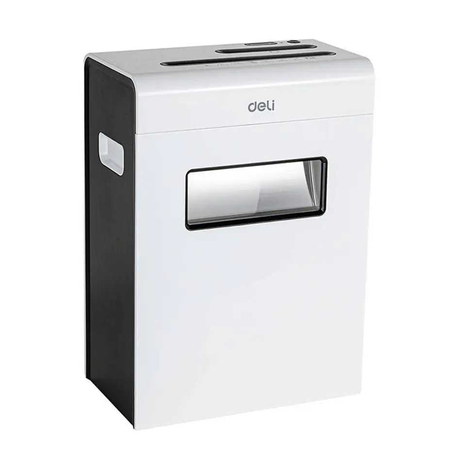 Now you can shred unnecessary documents even faster. The Deli shredder allows you to shred up to 8 A4 sheets of 70 g at the same time. The device cuts the paper into fine strips 25 mm long. It also easily handles CDs, which can be cut into several parts. This fast and efficient shredder is perfect for any office!