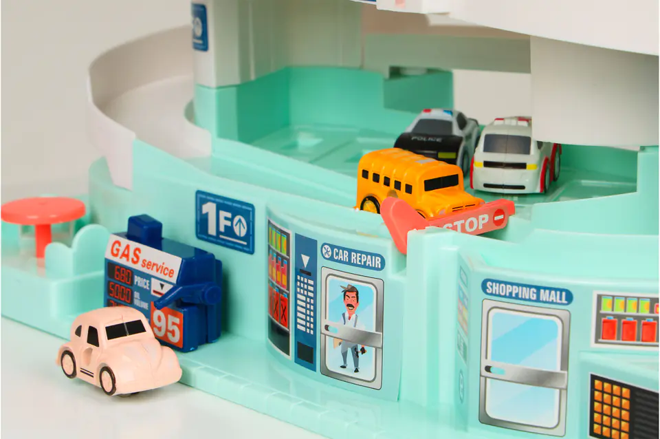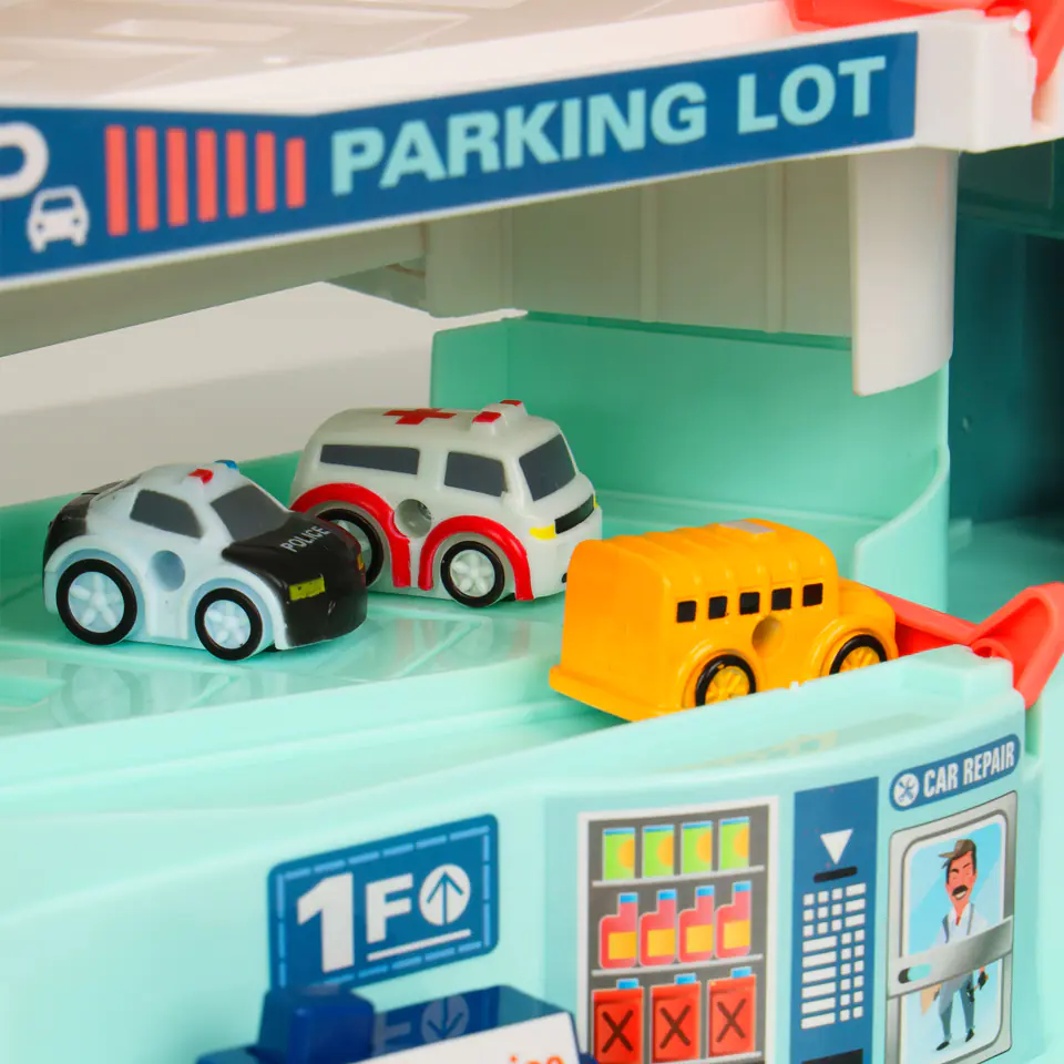 The elevator can take the cars automatically to the top of the parking lot. After switching the mode to "Manual", the elevator will move according to the rotation of the helicopter airport (just set in motion with one finger)