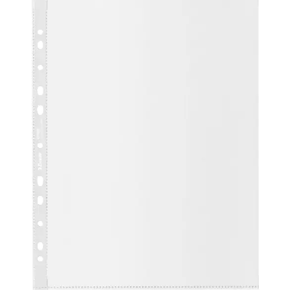Eco-friendly A4 MAXI document t-shirts for everyday use, made of very strong 100% recycled PP. The multi-perforated bar allows convenient storage of documents in all types of binders. Holds more sheets of A4 paper than standard T-shirts, up to 80 sheets. The entire product can be reused and recycled. It is packed in a cardboard box that is also 100% recycled and recyclable. Made in Europe. UL certified recycled content.