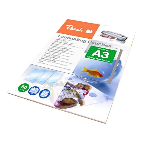 Peach lamination film, A3, 80mic, transparent, thermo, 25pcs