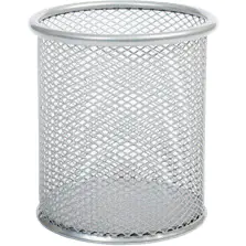 Pen cup NATUNA mesh silver round 100x90mm hxd