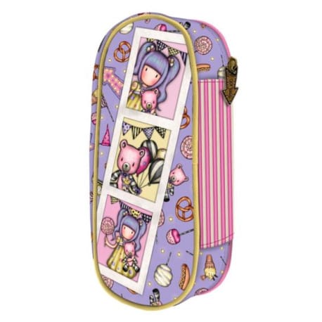 Pencil Case with Zipper, Cosmetic Bag - Gorjuss - First Prize The fantastic First Prize series is decorated with a graphic of a girl Gorjuss with a sweet teddy bear, on a lilac background, enriched with accessories from the amusement park: balloons, popcorn, lollipops, cotton candy. Pencil case ideal for the most important writing utensils. Equipped with a special mesh pocket for pencils and pens. It can also act as a cosmetic bag or sachet for necessary cosmetics, sewing utensils or other small things. Decorated with the Santoro logo on a rubberized decorative arrow. In addition, an arrow-shaped pendant. Made with special care. It has an interesting pattern with stylish stripes. A great gift, a functional addition to any satchel. Dimensions: 23 cm x 10 cm x 6 cm. A fun Fairground collection full of backpacks, accessories and stationery, which refers to the mysterious adventures experienced in the Amusement Park full of fireworks, carousels, barrels of laughter, swings and prizes won. Funny pompoms, patterns full of delicacies or metal pendants will take us to the colorful world of Santoro, full of surprises that await us in the amusement park. This is a collection that we will treasure for many years. Follow the girls, the heroines of series 4: Up & Away, Fireworks, Carusel and First Prize and discover an exciting collection full of wonderful treats! 384GJ22