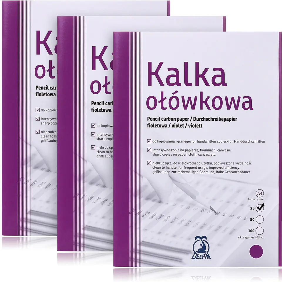 DELFIN pencil paper coated with purple writing mass. Used to make handprints. A3/ 100 sheets in folder;