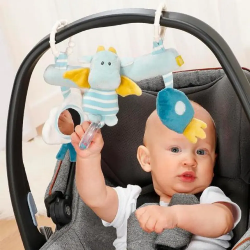 Pendant, Educational Mascot, Trapezoid from the collection: Small Castle A toy suitable for mounting on the handrail of any stroller, cot or pen. Velvety soft to the touch, with three pendants: a rocket and a charming Dragon with a rattle - a ring filled with rainbow beads and Cloud - a mirror. The toy is used for watching, grasping and great fun and training hand-eye coordination. Develops logical thinking, concentration, small motor skills. It arouses curiosity and stimulates the perception of the child. Rattle, funny mascots with a rattle and a pipe and rainbow pearls trigger the desire to play. To hang on a cot, stroller, baby carrier, etc. Two convenient handles allow for simple and flexible attachment. It is made of many, pleasant to the touch, materials. Shell: plush, velor. Can be washed by hand at 30 C. Product size: 24 cm x 20 cm x 4 cm. Package dimensions: 24 cm x 24 cm x 4 cm. Age category: 0 - 5 months. All toys of the German brand FEHN are safe for children from 0 years. They are made of the best quality materials. They meet EN71, CE standards, tested at Stiftung Warentest or Ökotest. FE65459