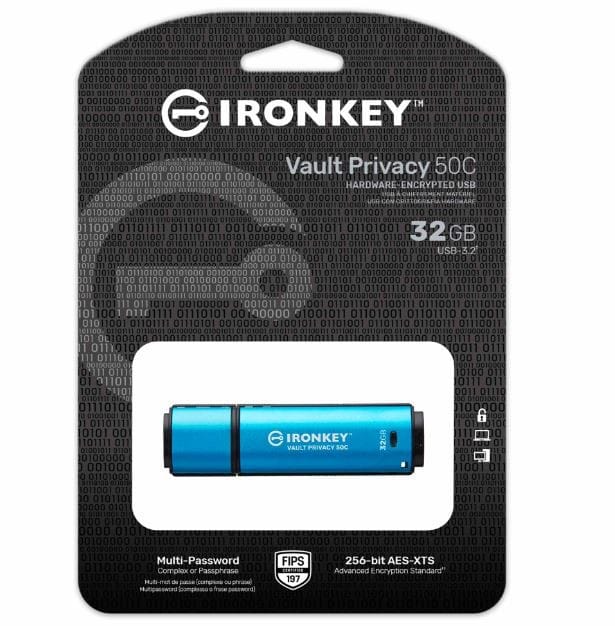 The Kingston IronKey Vault Privacy 50 series is a premium USB flash drive, Type-A and Type-C1, that provides business-grade security with FIPS 197-certified 256-bit AES hardware encryption in XTS mode and includes protection against BadUSB with digitally signed firmware and brute force password cracking attacks. Because it is an encrypted record under the physical control of the user, the VP50 series has the advantage of using the internet and cloud services to protect data.