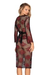 One of the most beautiful proposals of this season! Cover your body with a phenomenal, semi-translucent peignoir in a beautiful, dark red lace with an eyelash effect at the edges. The waist will be emphasized by an elegant, satin binding, which has a bow at the back. If you also belong to the group of lovers of beautiful, extremely feminine lace - this lingerie is for you. Composition: 90% polyamide, 10% elastane.