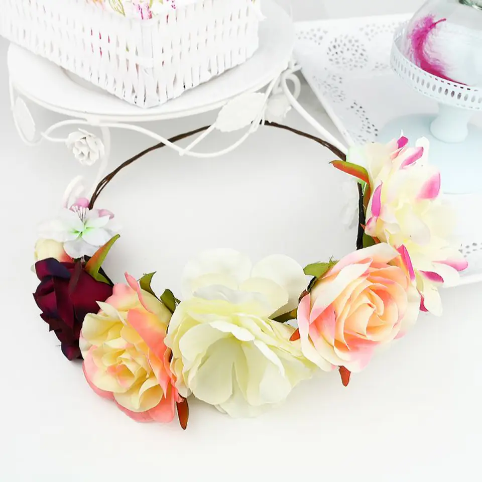 Romantic and delicate wreath for the head made of high quality artificial flowers.