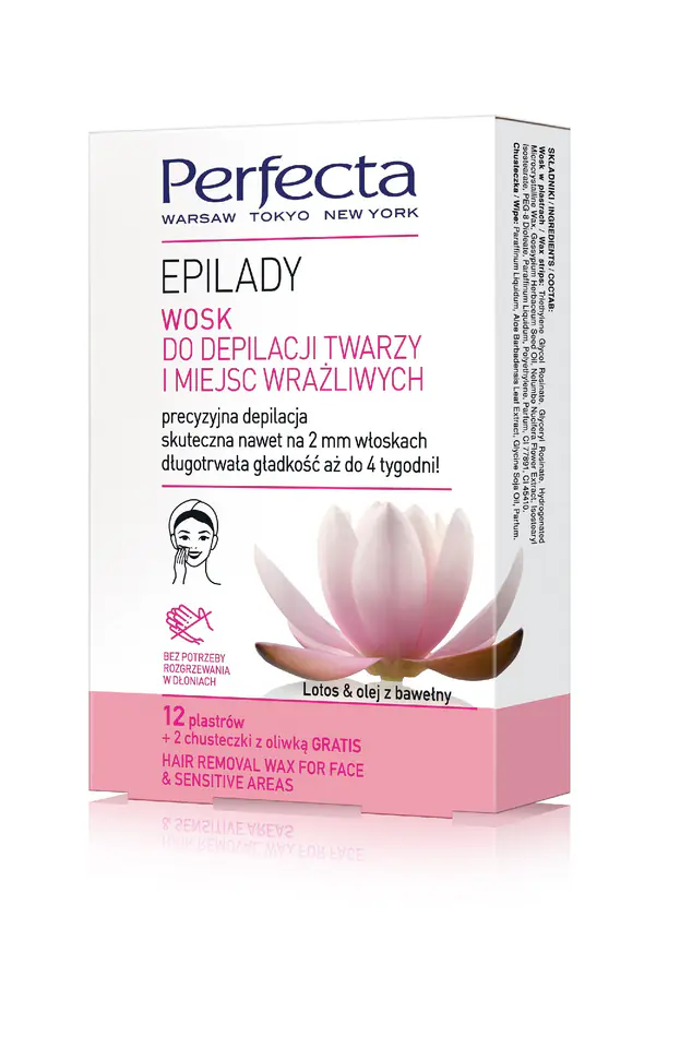 Precise and simple hair removal of the face and sensitive areas (e.g. armpits, bikini) using wax patches in 4 simple steps. The elastic structure of the patches and the unique new formula allows easy separation of the patches without the need to rub and warm up in the hands. It allows for thorough epilation of small and delicate areas of the skin. A special formula dedicated to sensitive areas to minimize the risk of irritation. Enriched with lotus flower, they give a long-lasting effect of smooth skin, while caring for it. The patches are also effective on short, even 2 mm hairs. Waxing weakens the hair and makes it grow back more slowly. After the treatment, the skin remains velvety smooth, up to 4 weeks.