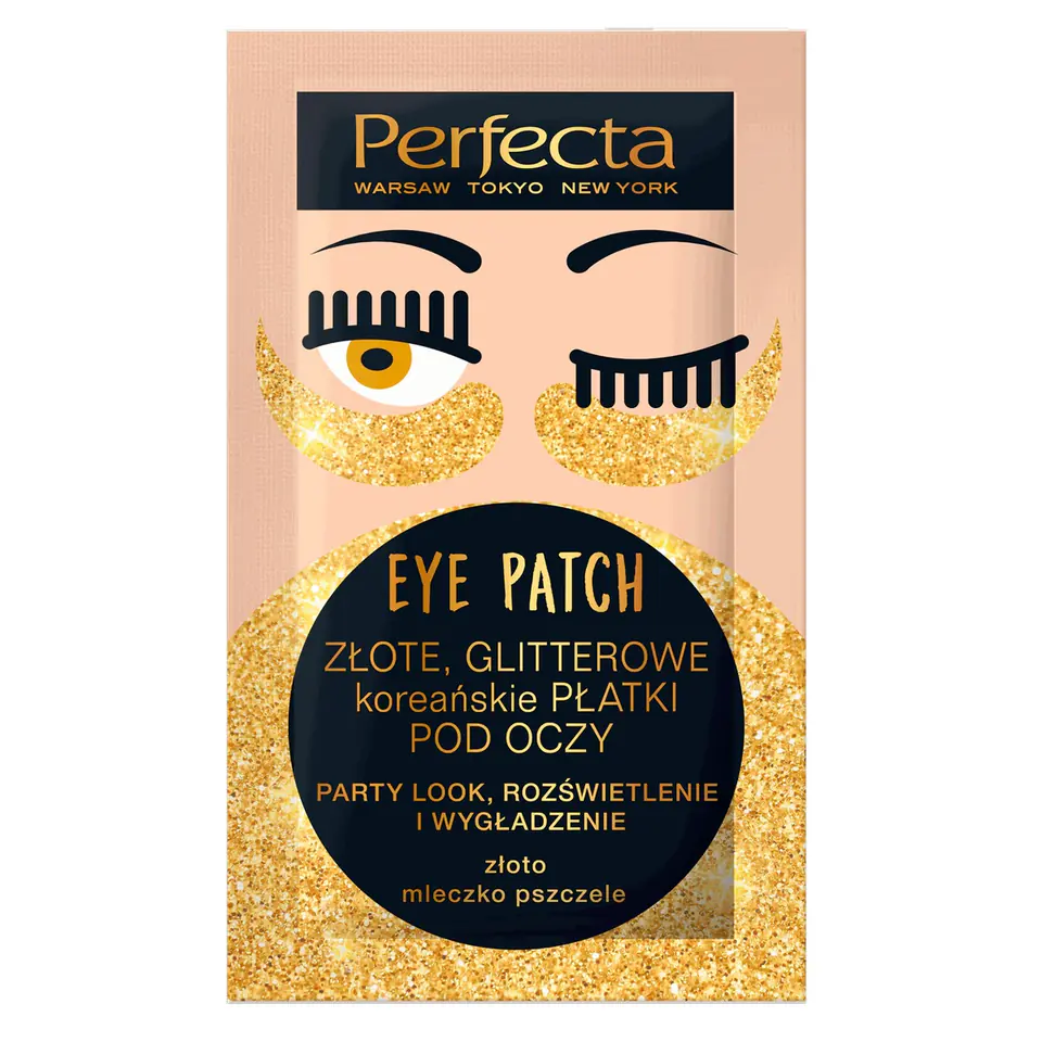 GLITTER EYE FLAKES with gold and royal jelly, intensively firm and smooth the delicate skin under the eyes. Recommended for the care of tired skin, with signs of aging.
