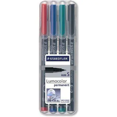 Foliopis Lumocolor_ permanent - universal writing pen on foils for projectors and on almost all surfaces, thicknesses S and M are used to describe CDs / DVDs, - ink with the formula DRY SAFE _ can remain without a cap for several days and does not dry out (ISO 554 test), - housing and cap made of PP guarantee high resistance to destruction, - does not smudge on most surfaces, - quick-drying, also ideal for left-handed people, - waterproof, practically odorless ink, - black color is resistant to weather conditions, - with a clip, - can be used during an airplane flight _ automatic pressure equalization protects pens from spilling ink during flight, - 4 line thicknesses, 8 colors