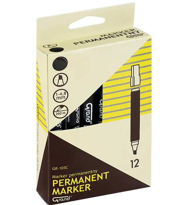 Permanent marker black beveled tip pack 12 pieces GR-103C GRAND