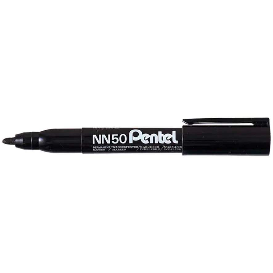 Pentel permanent marker _- Round tip (NN50). Suitable for any surface, except important documents and white boards (unsuitable ink). The length of the writing line is 570m. Writing line thickness 1.07mm The product is made of 85% przetworzonych._ materials - sales unit 1 piece