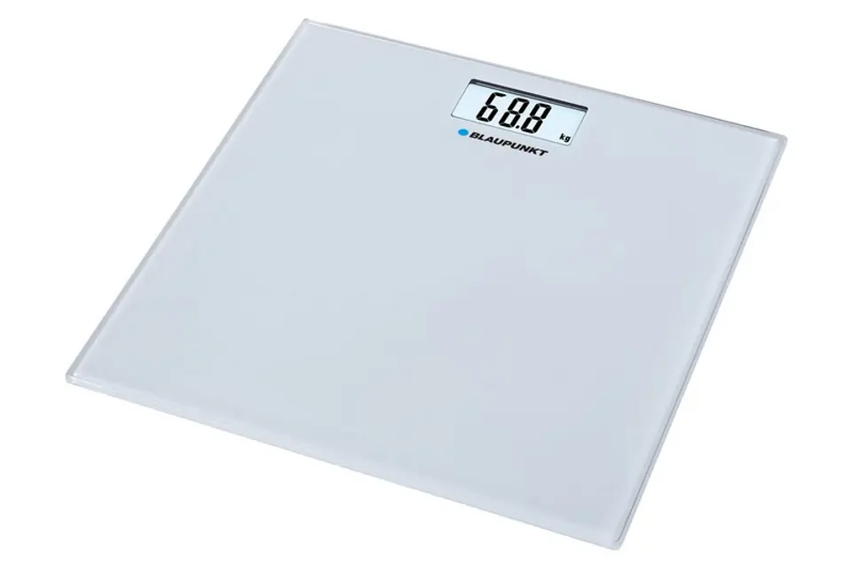 The minimalist design of the scale with a white glass platform will perfectly fit into simple and modern finished bathrooms.
